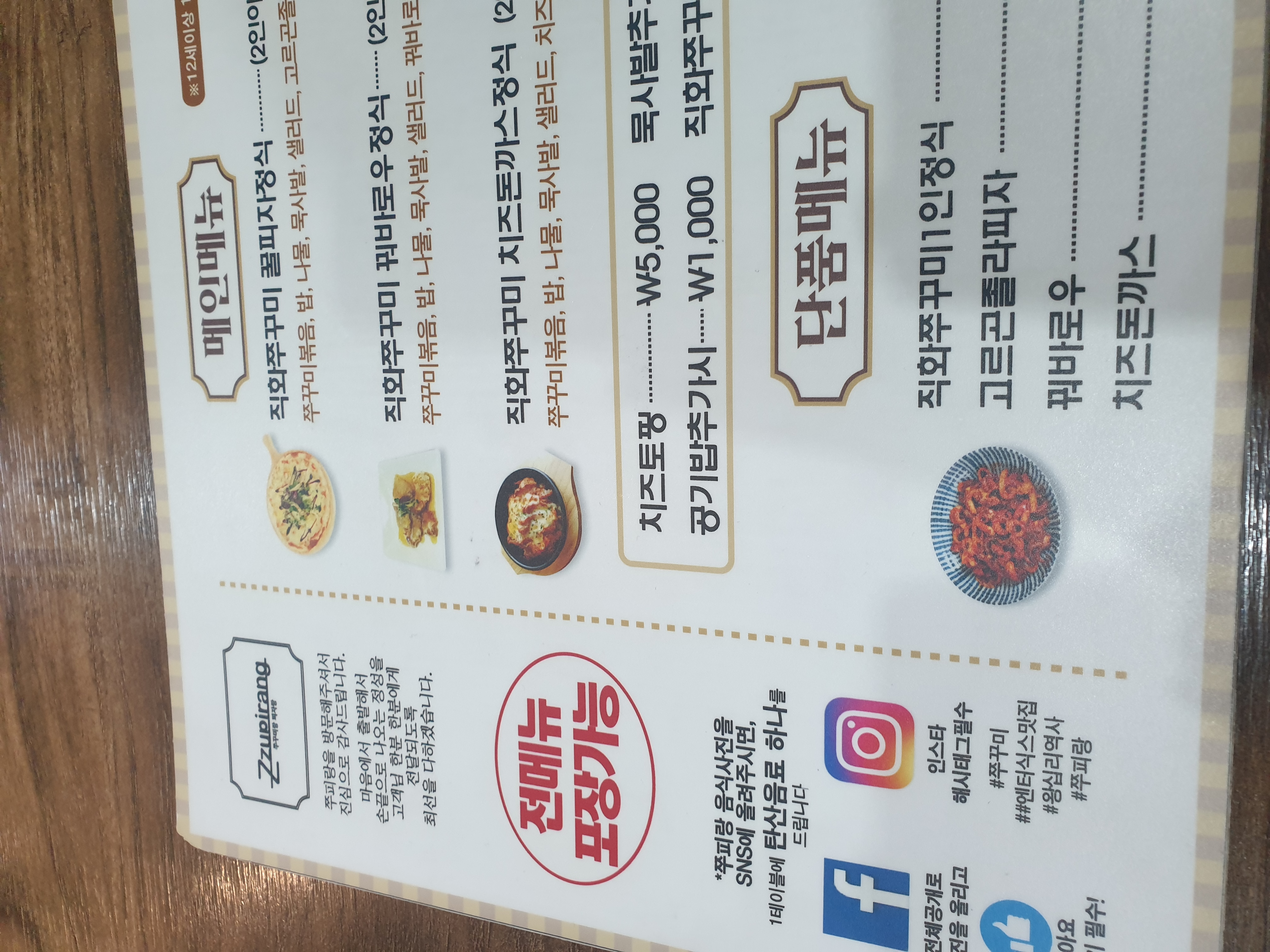 직화쭈꾸미 꿀피자정식 2인을 맵기 보통으로 주문했어요.
